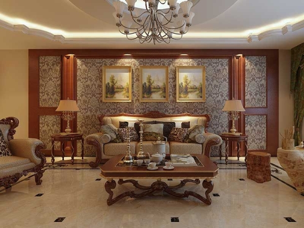 3.欧式沙发背景墙一般面积比较大,可以做成照片墙。如果你觉得每天都很难做成照片墙,那么一幅大壁画是个不错的选择。这么大的面积,拼接不容易形成理想的视觉,会考验装修师对整体的把握和布局。