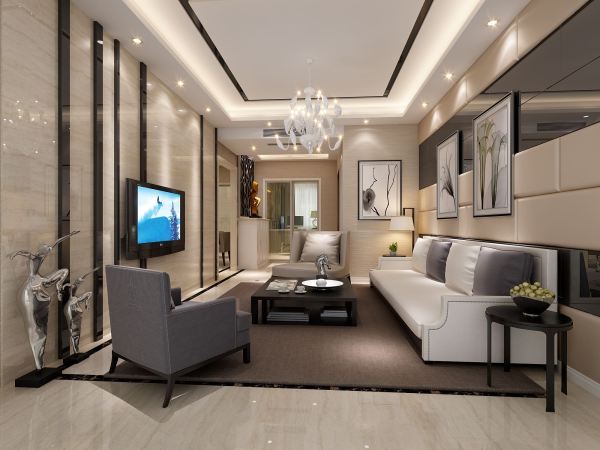 4.在客厅的装修中,为了追求奢华,四面墙都覆盖着板材,天花板上有两层或三层三维天花板。这种装饰是不可取的。由于四面墙板覆盖,占地面积大,整个空间面积降低,成本高,不利于防火。天花板太低会让整个房间感到沮丧。