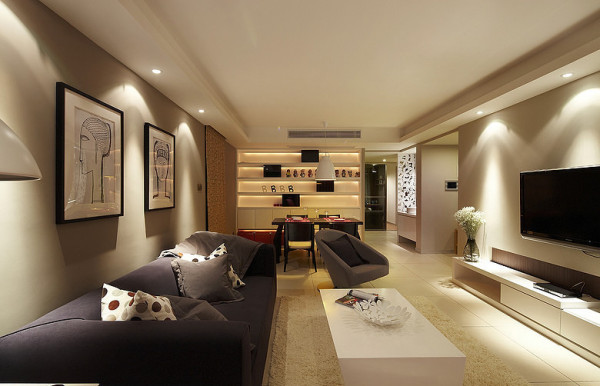 现代商品房的高度很低,所以为了让房间看起来更高,天花板可以用来处理,一种是把镜子线升到墙和天花板的交界处,让它们形成一个整体,看起来有一种升高屋顶的感觉。另一种是在天花板周围做一个凸轮,涂上颜色,不仅让空间看起来更漂亮,而且让屋顶的感觉。