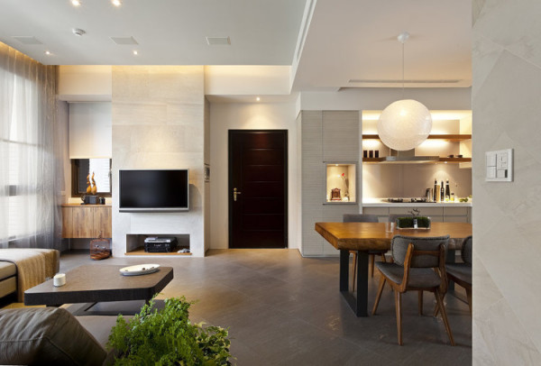 如果你的房子面积有限,我们应该更加关注区域的划分。明确的区域划分可以使客厅看起来井然有序,宽敞明亮。除了坚硬的墙壁外,我们还可以根据灯具的变化来划分家具、展示、天花板、地板材料甚至光线。它们具有良好的兼容性、流动性和灵活性。