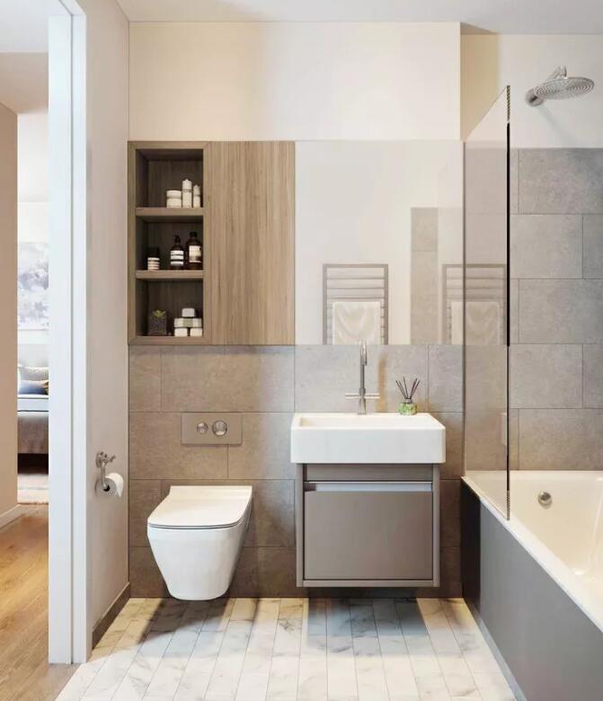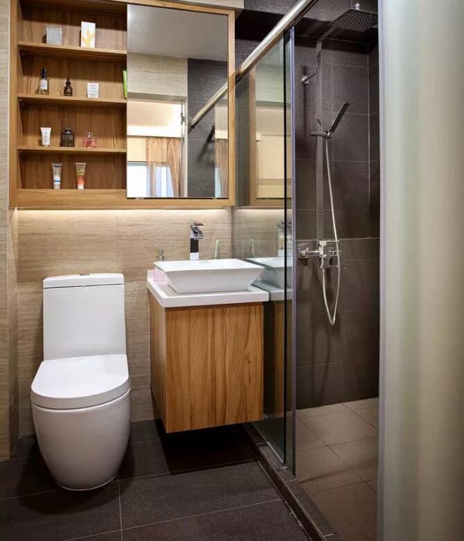 封闭式淋浴区可以完全阻挡水的蔓延。如果朋友的浴室空间允许,可以做一个独立的淋浴区,洗澡的时候不用担心水到处流。