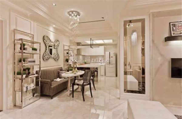 小户型在满足基础配备之后,要考虑的就是如何让小空间从视觉效果上放大,正如这个客厅,沙发旁边设计的开放式L型书架,不仅能摆放书籍和一些装饰品,而且不会使沙发背景墙...